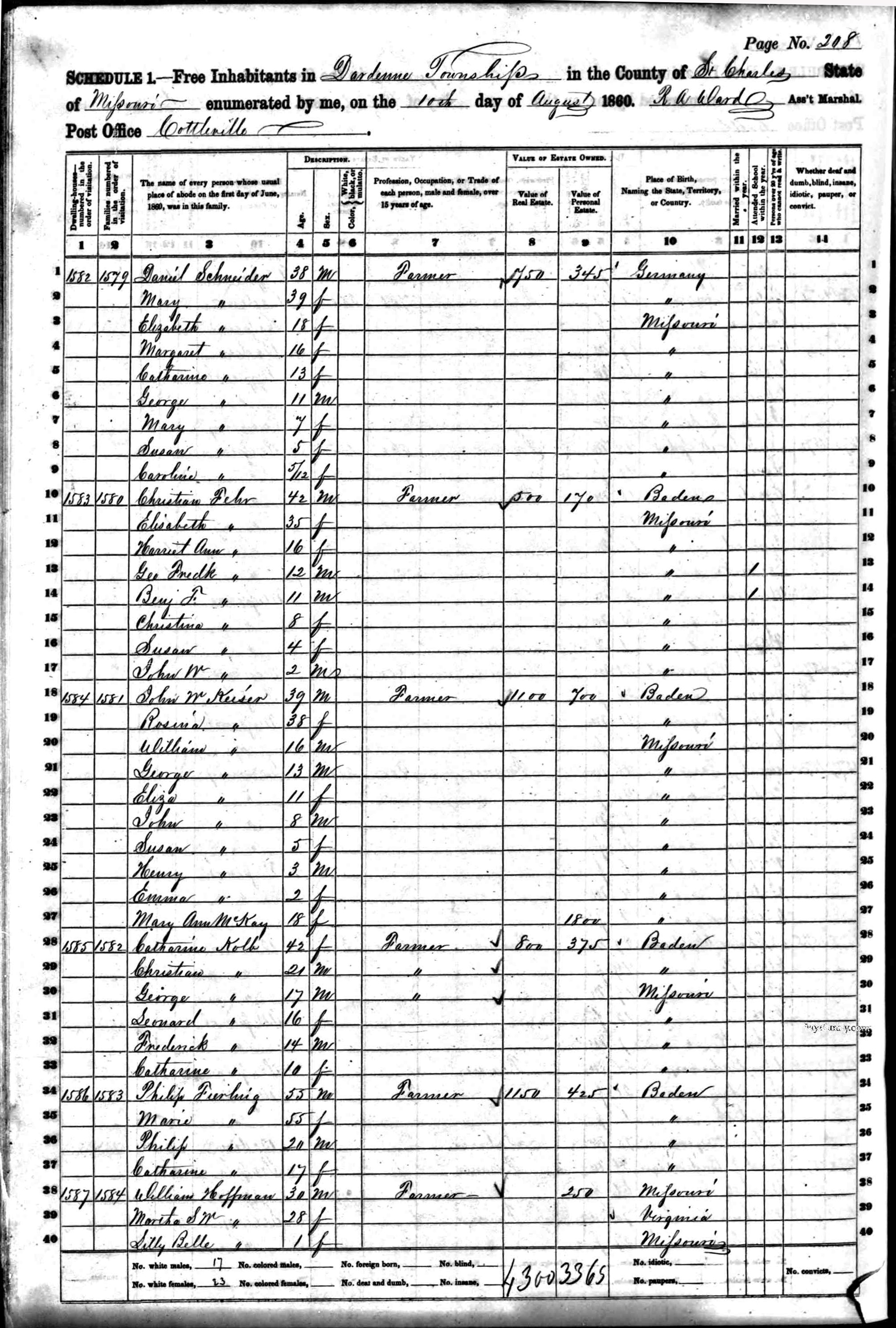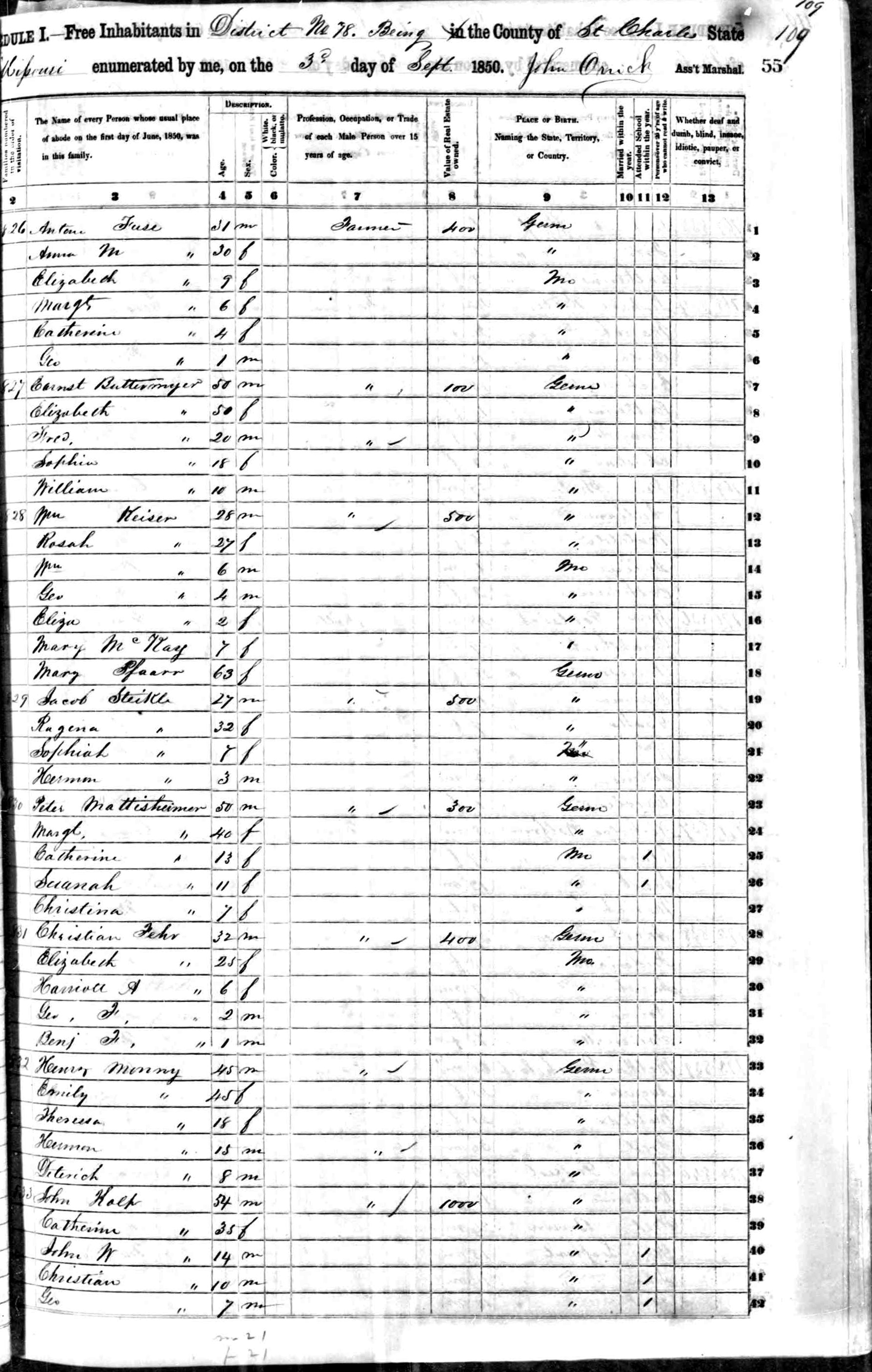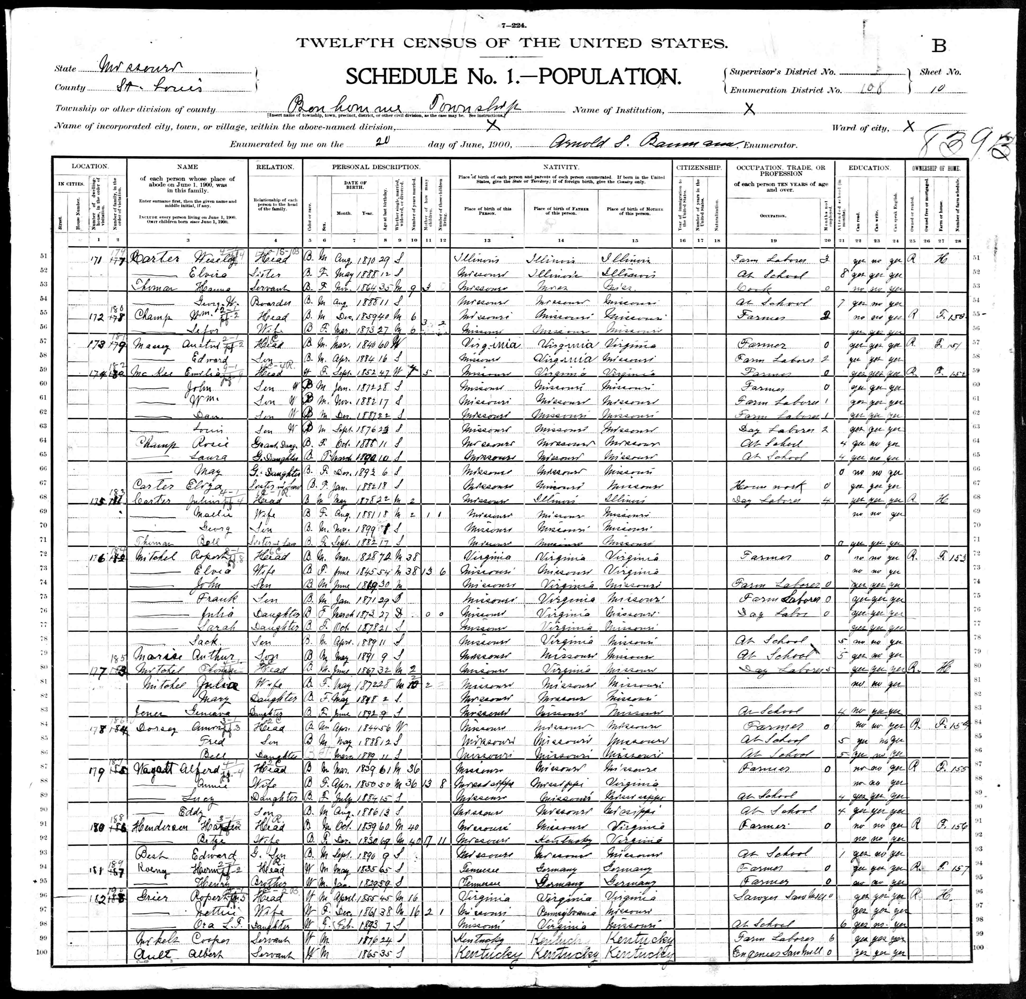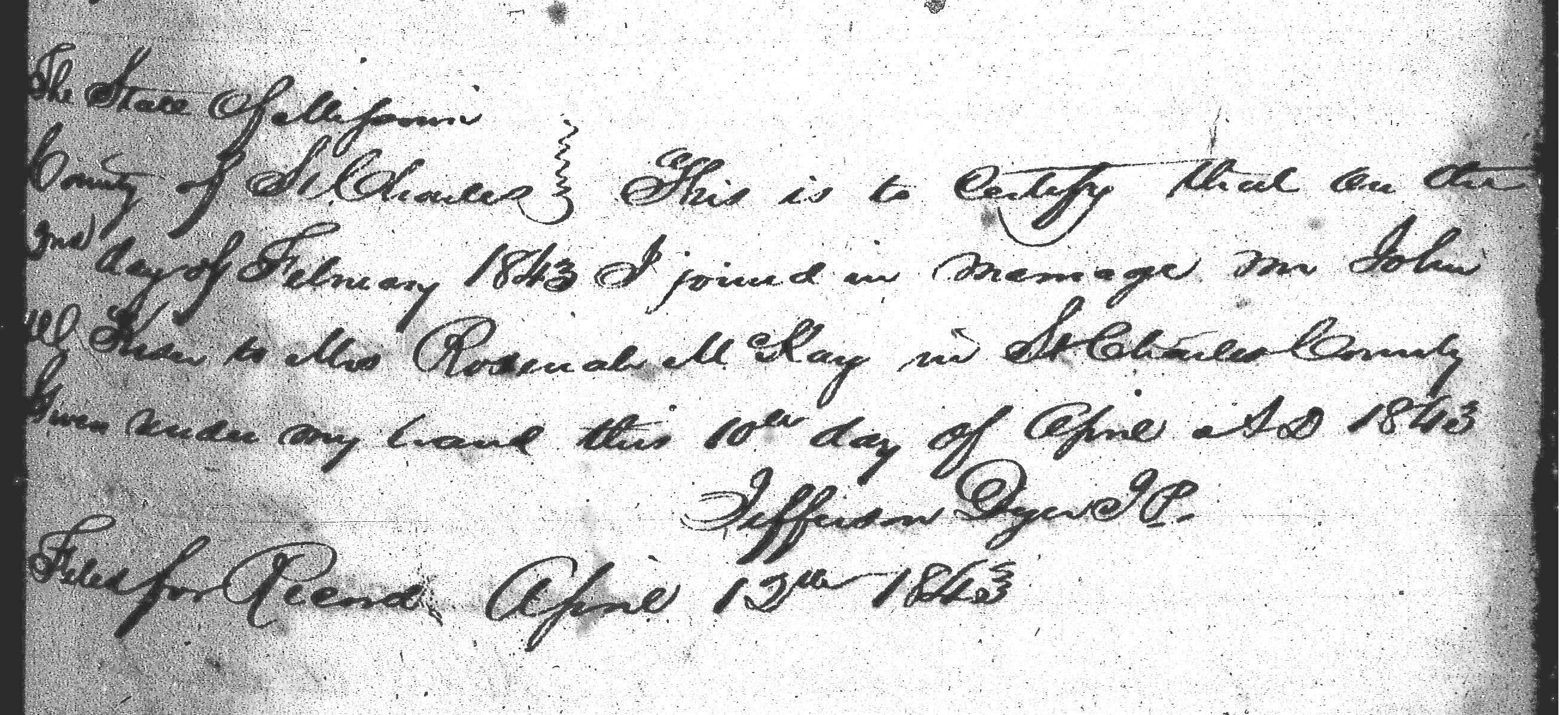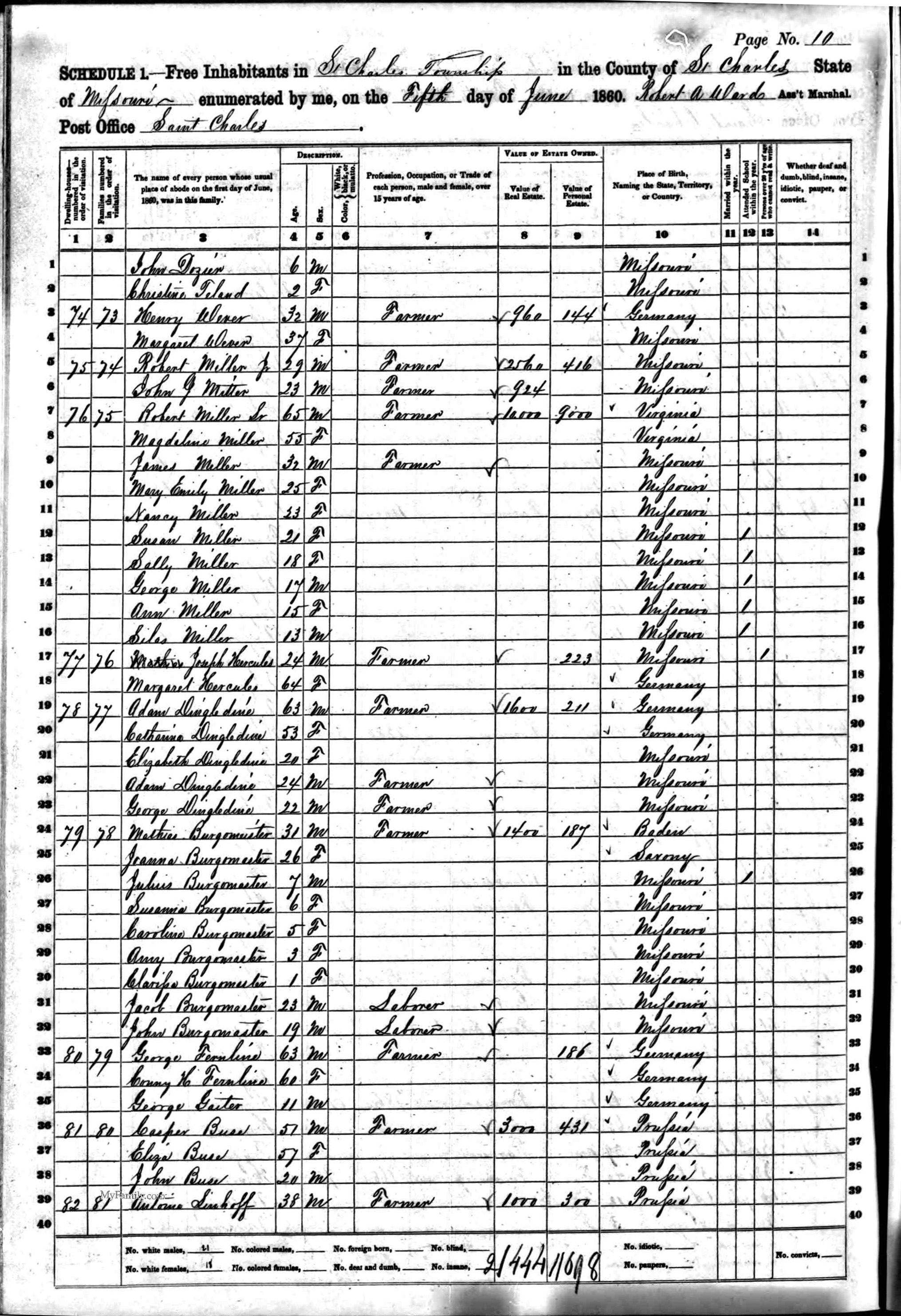 [Home] [Robert Mackay Clan Links and Information] [The Origins of William McKay & Family]The Origins of William McKay & Family (Page 16)Documents1831 James M. McKay Land Purchase Certificate 21 Nov 1831 1831 James M. McKay Land Purchase Receipt 1831 deeds of sale Dee Ann identified in the Forum Oct. 29, 2008 in which Asa McKay, Edith McKay & John Green McKay sold their land to Jacob McKay and Samuel Wilson on 9 September 1831. James and Edith bought their land in St. Charles, Missouri on 28 Nov 1831. 1831 Asa McKay to Jacob McKay Deed 9 Sep 1831 1831 Asa McKay to Samuel Wilson Deed 9 Sep 1831 Edith McKay's marriage in 1833. 1833 Edith McKay and Archibald Caruthers Marriage James M. McKay's Patent 1835 James M. McKay Land Purchase Patent 2 September 1835 Rosina Pfaar Immigration record 1840 Census for Jas McKay in Cuivre Township, St. Charles County James and Rosinah's Marriage license 1841 James McKay and Rosinah Pfarr Marriage 19 October 1841 1842 medical bill for James McKay prior to his death sometime on or after February 14th 1842 James McKay Medical Billing Rosina McKay named administrator of James McKay's estate and his sister, Edy Caruthers and brother, John Green McKay are identified 1842 Rosina McKay Administrator 17 March 1842 James McKay estate inventory--William (Bill), his mother Harriet and sister Margaretha, are identified on pg. 2 1842 James McKay Inventory (page 1) 25 March 1842 1842 James McKay Inventory (page 2) 25 March 1842 1842 James McKay Inventory (page 3) 25 March 1842 James McKay's widow's (Rosina) marriage to John Keiser in 1843. 1843 John Kiser and Rosina McKay Marriage John Keiser requested partition of slaves between James McKay's widow and child, Mary Ann in 1847. 1847 John Keiser Partition Request The partition distribution names the slaves in 1847--"Boy Bill" is distributed to Mary Ann. 1847 Slave Partition and Distribution The partition distribution is approved by Robert Miller P. C. judge. 1847 Slave Partition Probate Approval Inventories of Mary Ann McKay's property and administrative charges in 1849 1849 Mary McKay Inventory Charges 1849 Mary McKay Inventory Property 1850 census for Edith McKay Caruthers and John G. McKay 1850 Edith and A. R. Caruthers & John G. McKay Census 1850 census for John & Rosina Keiser and Mary Ann McKay John Wm. Keiser and Mary Ann McKay Census 1850 slave schedule for "John W. Keizer"--p.1 is William (12 year old male), Margaretha (7 year old female), p.2 is Elisa (2 year old female) Slaves for "Margt Taggart" are also listed on p.1--some or all of the Taggart slaves became the property of Robert Miller who was identified as the father of William's wife, Amelia Taggart McKay 1850 John W. Keizer Slave Schedule (part 1) 1850 John W. Keizer Slave Schedule (part 2) 1852 William's sister Margaretha died in St. Louis, apparently while serving George Keiser--the brother or other relative of John Keiser. 1855 & 1857 Slave & property tax bills for William, Elisa and 240 acres of land. 1855 Slave and Property Tax December 1857 Slave and Prop Tax December 1860 census for John & Rosina Keiser and Mary Ann McKay. 1860 John W. Keiser Mary Ann McKay Census 1860 slave schedule with "Mary Ann McCay" the owner of a 20 year old male and 12 year old female (William & Elisa). 1860 MAry Ann McCay Slave Schedule 1864-1865 William's enlistment into the U.S. Army and muster records in the McKee surname for F Company, 3rd Regiment, U.S. Colored Troops, Heavy Artillery. 1864 USCT Descriptive List William McKee Picture of William McKee's name on plaque A-8 at African American Civil War Memorial in Washington D.C.--which honors over 209,000 "Colored" soldiers and sailors who served the Union. 1865 St. Charles County marriage record--not recorded until 1889; official copy 1865 William McKee and Emilia Tigert Marriage 1870 census for William McKay--wife's name "Ella", Ballwin, St. Louis County 1880 census for William McKay--wife's name "Jane", Bonhomme Township, St. Louis County 1889 & 1891 Amelia McKee's Widow's Pension Declarations 1889 Widows Pension Declaration 1889 Widows Pension Marriage Record 1891 Widows Pension Declaration 1900 census for Amelia McKee and sons John, William, Dan (my grandfather) and Louis 1900 Emilia McKee and sons Census 1916 Letter sent by "Jennie McKee" to Dept. of Interior notifying them that Amelia McKee had died and "Jennie McKay" as informant on "Amelia McKay's" two death certificates. The death certificates also show her father to be Robert Miller. 1916 Widows Pensioner Deceased 1916 Amelia McKay Deceased (1) 1916 Amelia McKay Deceased (2) 1917 death certificate for Mary Ann McKay Hillenkamp, the daughter of James McKay 1917 Mary Ann McKay Hillenkamp Deceased 1920 census of my grandparents, Daniel & Elizabeth (Lizzie) McKay, with my father Julius and his siblings--Maryland Heights, St. Louis County, Missouri 1942 death certificate of my grandfather Daniel McKay--the informant was my Aunt Sophia and she indicated that Daniel's father, William, was born in Germany. I believe this myth was created because William grew up in a household and community of German immigrants and he probably learned German language and culture which caused his descendants to mistakenly believe William was German. Sophia also stated that Amelia's maiden name was "Mueller" which seems to be the German spelling of "Miller." 1860 census and slave schedule for Robert Miller--identified as the father of Amelia Taggart (aka Miller) McKay Robert Miller 1860 Slave Schedule